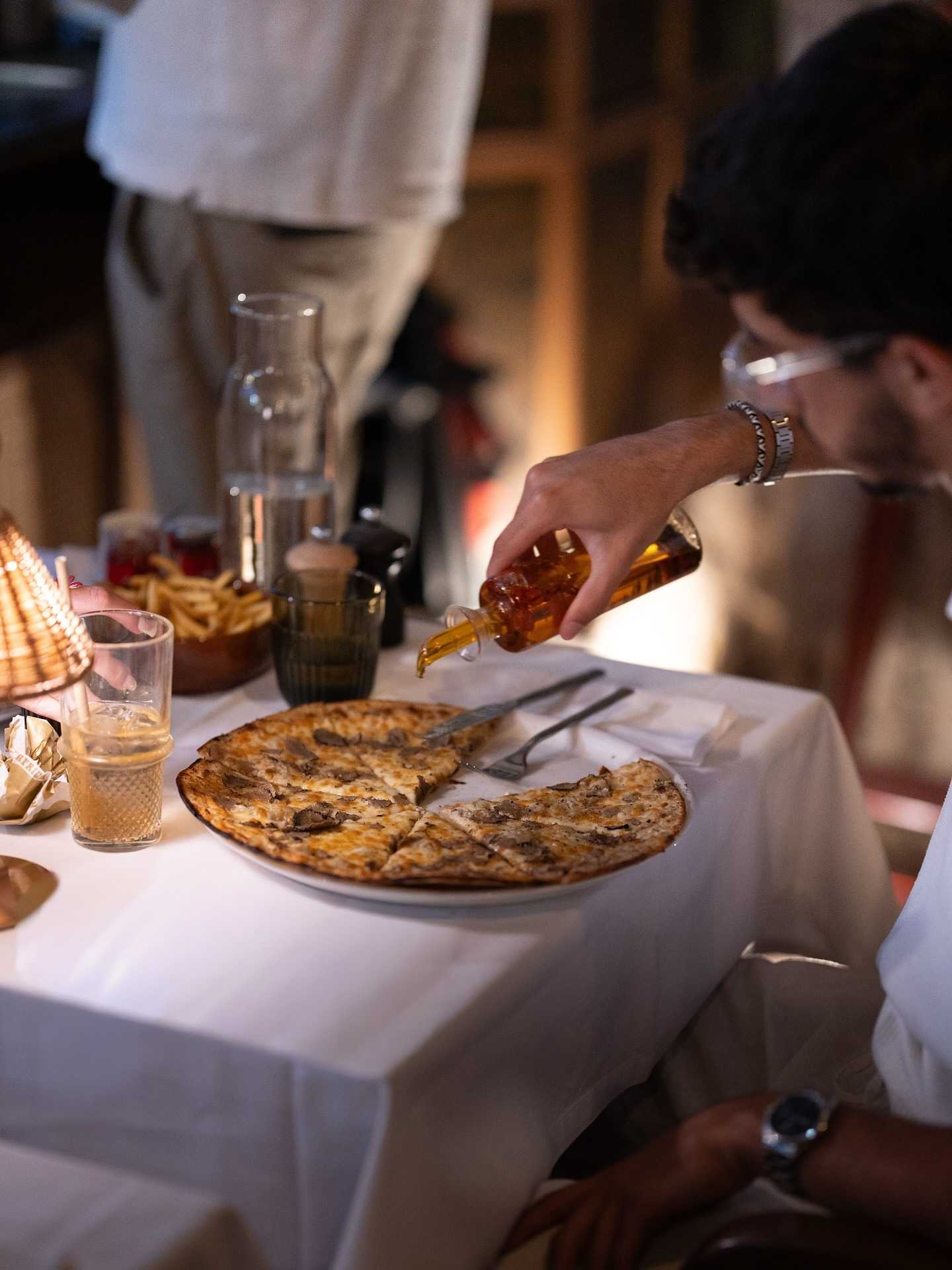 Setting's luxe-coastal: palm trees, sea views, rich wood, and greenery. Vibe's relaxed-elegant, perfect for lunch, dinner, or chilling. Surrounded by plane trees and village buzz, it's a refined escape in the heart of it all.